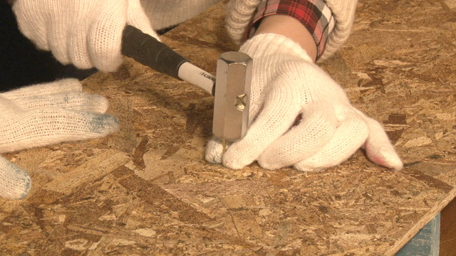 Step2下穴を開けて材料を釘打ち