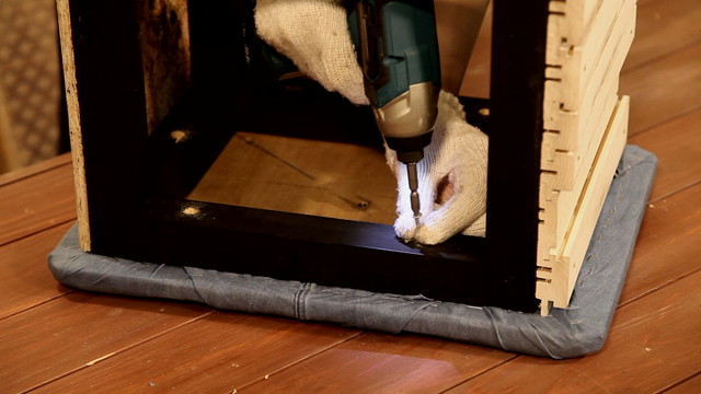 座面の固定は土台の裏側からビス留めします。