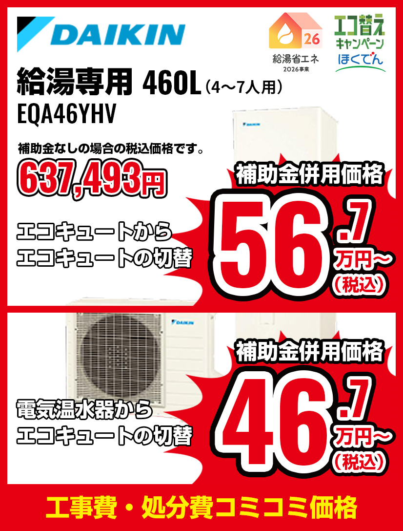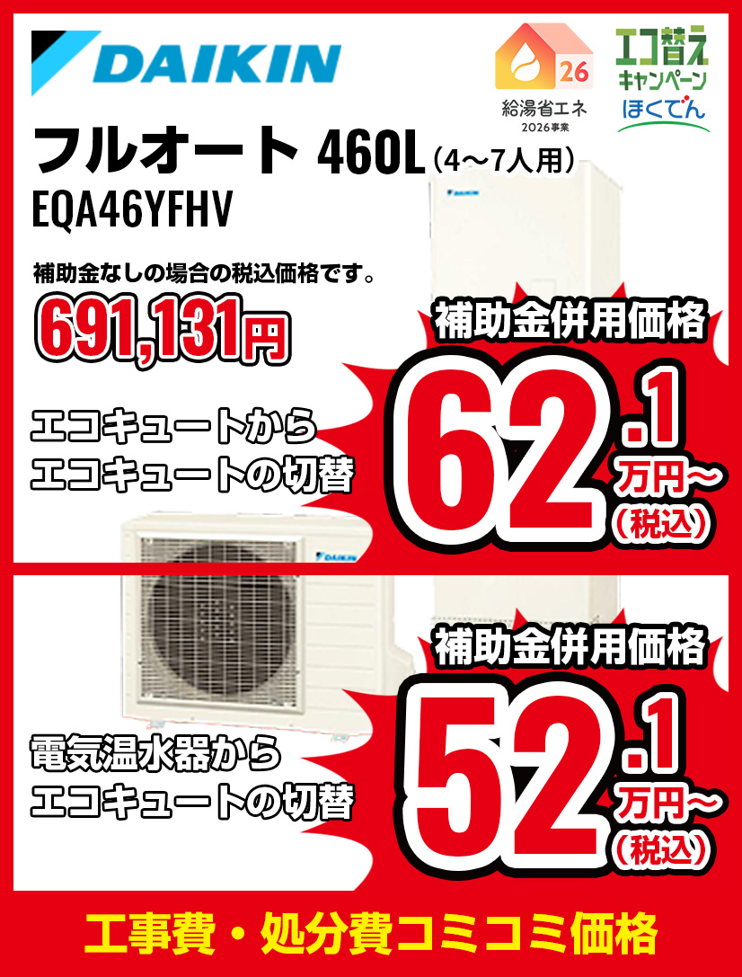 今ならエコキュートの設置に対して支援金が受けられるチャンスです。光熱費の節約+補助金で、導入コストをしっかりカバーできます。