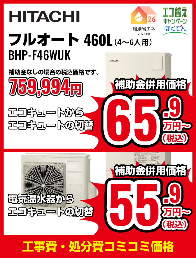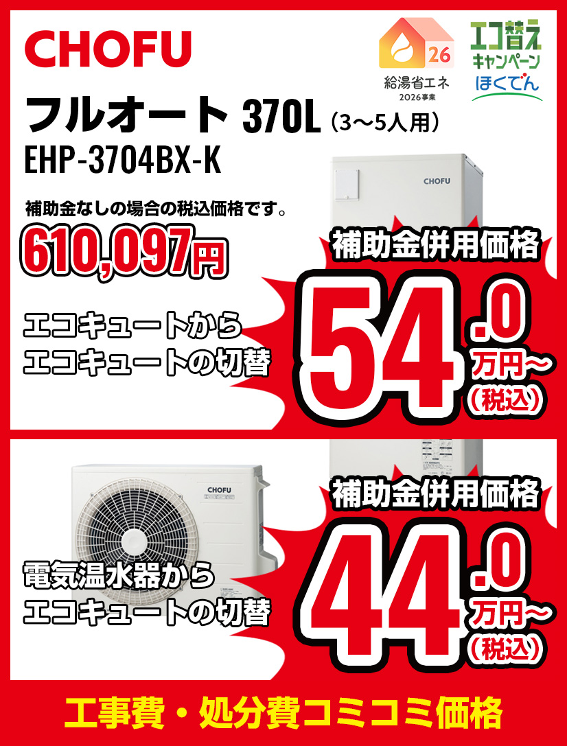 ヒートポンプの技術で、空気の熱を利用してお湯を沸かすからとっても省エネ。