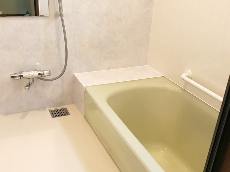 他社に相談した時はユニットバスが入らない・工事を行うことは無理だと断られましたが、今回「できるかぎりユニットバスに近づける」工事をしていただき、こんな方法があるのかと驚きました。