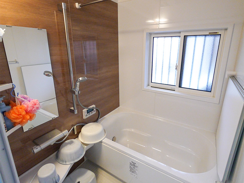 浴室:LIXIL リノビオV(1416サイズ、サイズの都合でマンション用商品を利用) 浴室窓:YKK AP マドリモ(浴室用) |