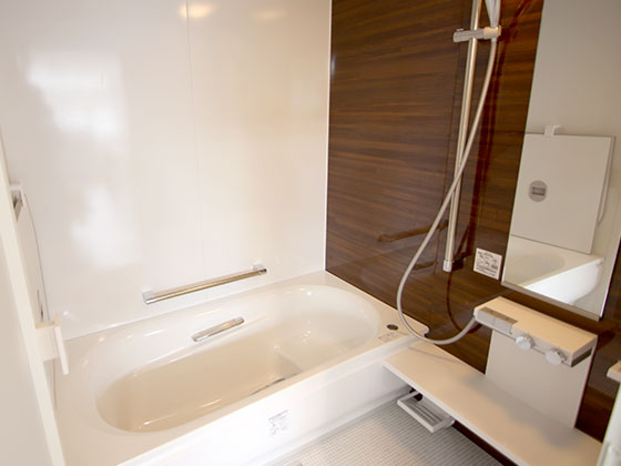 お風呂に入った一歩目がヒヤッとした冷たさがなく大満足です。新しいお風呂は入口の段差が解消され安全なバスルームになりました。