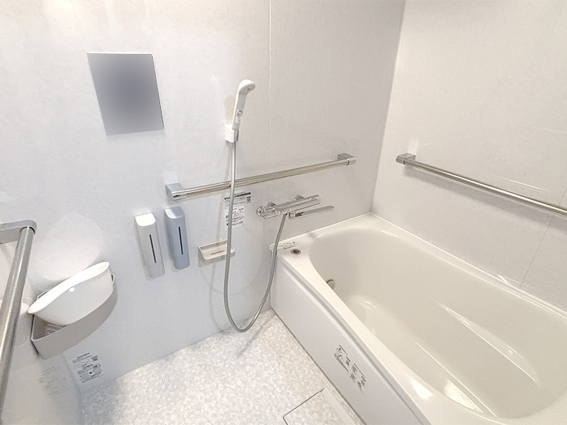 - 四方に手すりを設置して安全性を高めたバスルーム