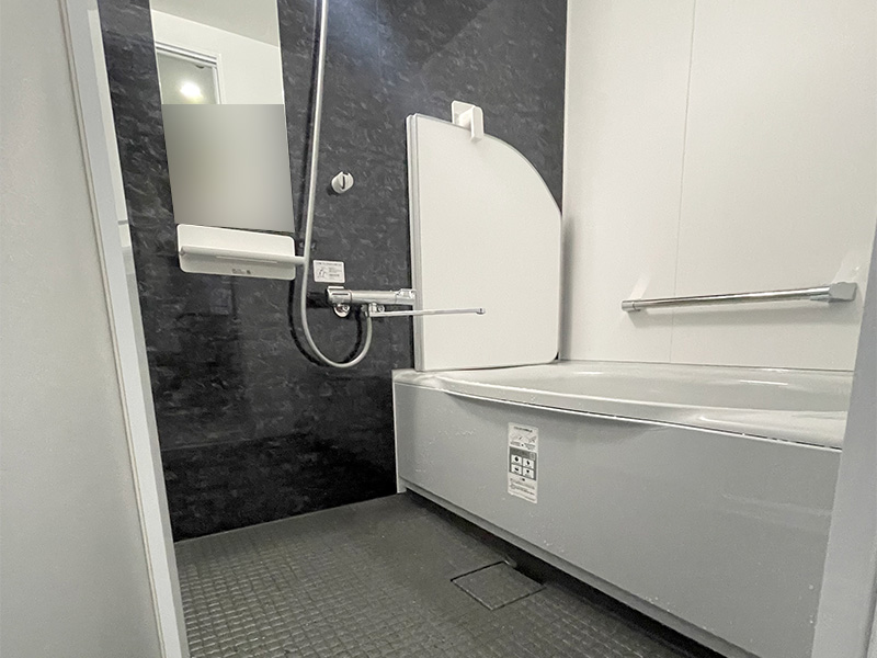 | 商品仕様 | 浴室:LIXIL リノビオV Eタイプ 1317サイズ(アクセントパネル:ストーンモザイクダーク、周辺パネル:マットホワイト、床:グラトニックグレー、浴槽・エプロン:グレー) | ||