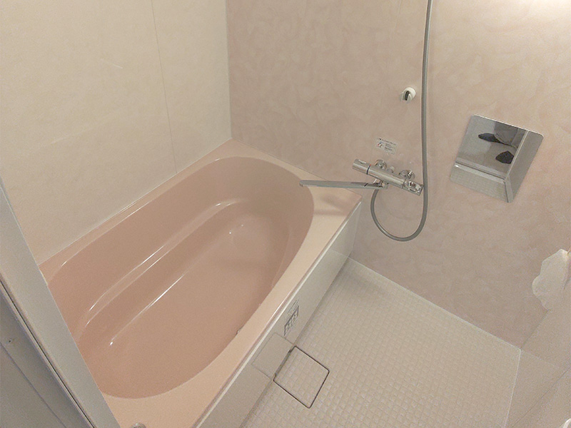 - ピンクが映えるお手入れしやすいバスルーム