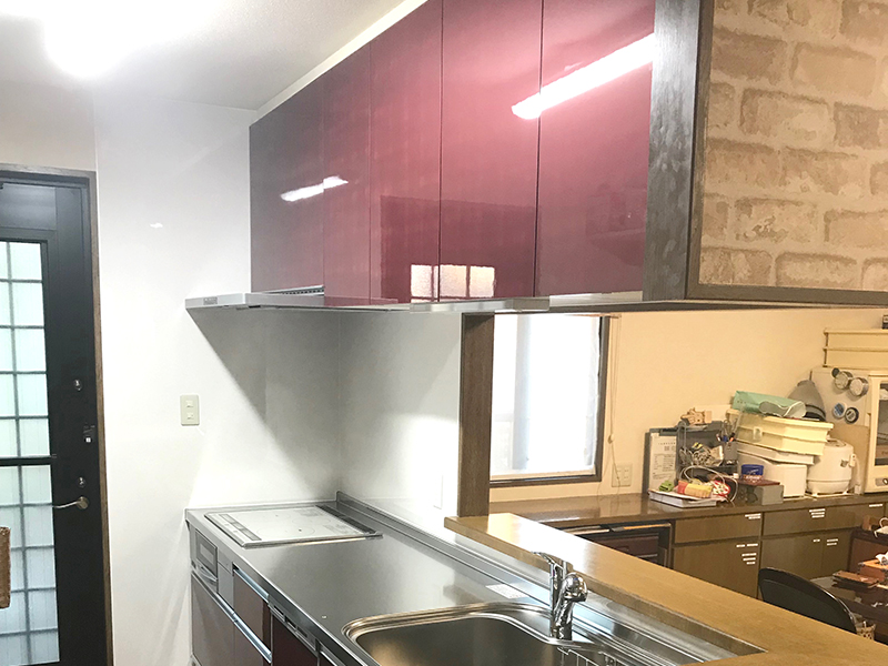 ・また、せっかくキッチンのリフォームをするならイメージをガラッと変えたいということで、鮮やかなカラーの扉を選びました。