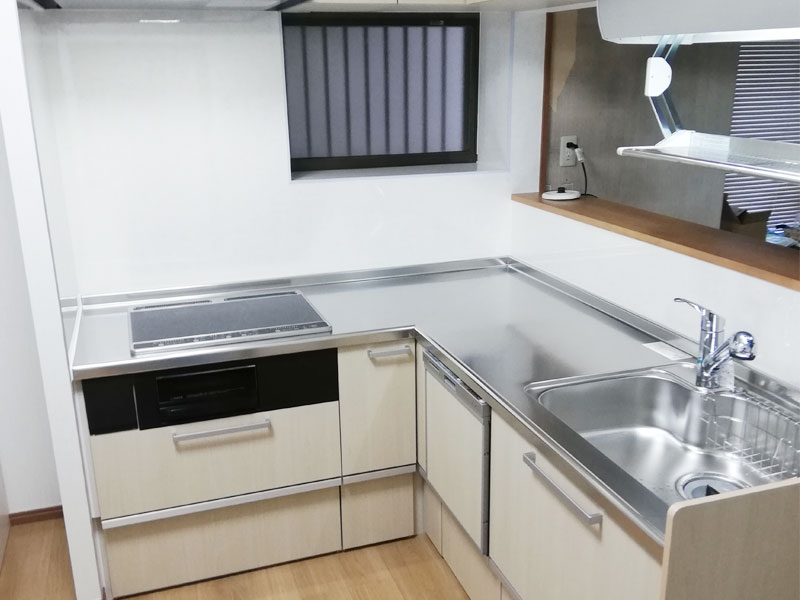 キッチンの形をI型→L型にするため、家具の配置を含め使い勝手良くなるようにサイズ・場所等をお客様と何度も確認しながら 工事を行いました。