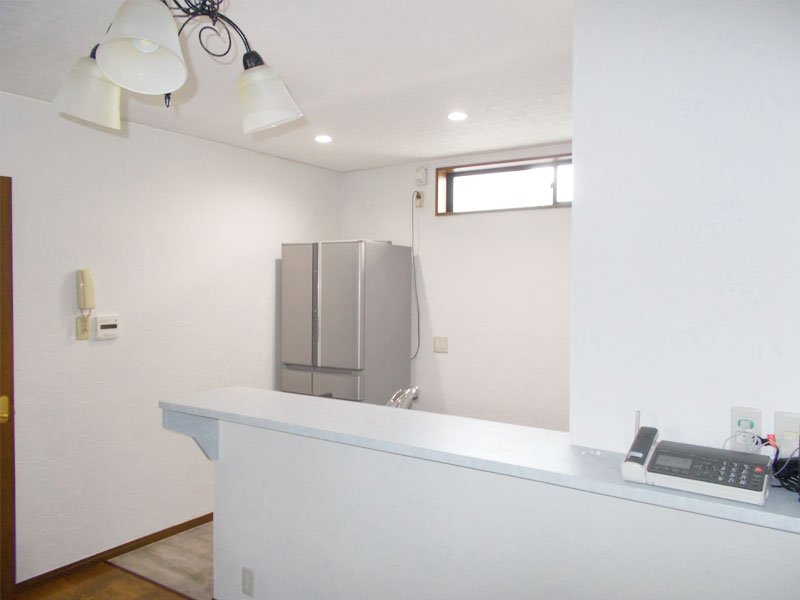 はじめはキッチン取り替えのみのご要望でしたが話が進んでいき入口が狭い・キッチン内が少し暗いなどの話が出てきましたので、吊り戸・袖壁を撤去しダウンライトを設置しました。