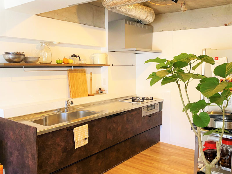 - スケルトン天井に仕上げた開放感のあるキッチン