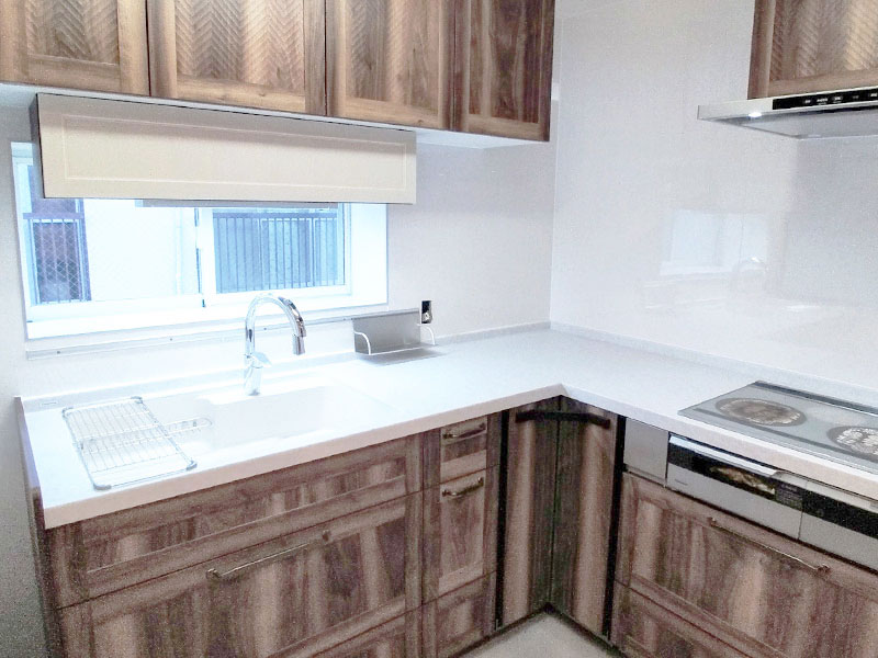 よく料理をされる綺麗好きな奥様が、ストレス無く作業ができるキッチンにしたいとのことで、タッチレスの水栓やキッチンライトを取り入れました。