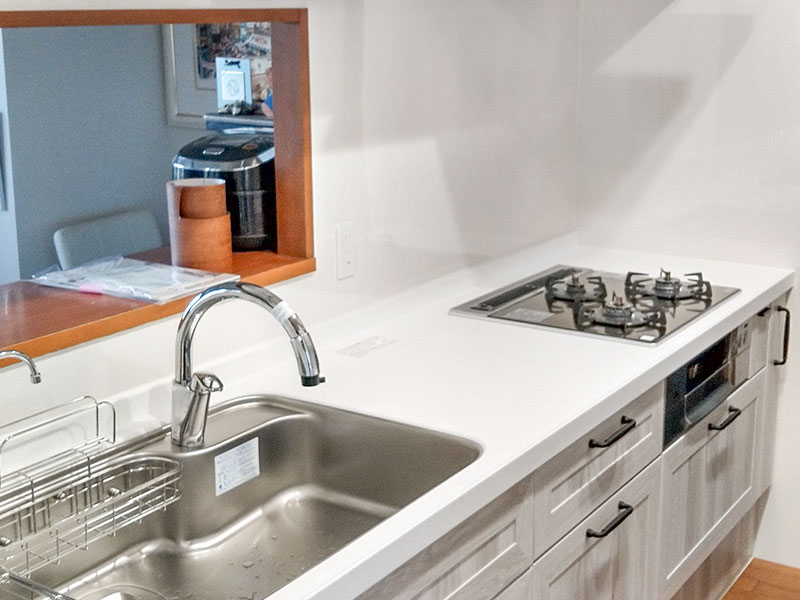 既設のキッチンはお手入れがしっかりとされており綺麗な状態でしたが、収納スペースの拡張や使いやすさを求めてリフォームのご依頼を頂きました。