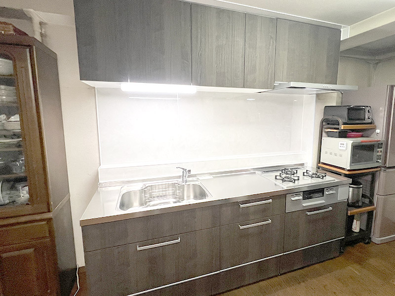 給水・排水部分から水漏れが発生しており、既存のキッチンは開き扉で収納力も少なかったため、この機会にキッチンを取替えたい。