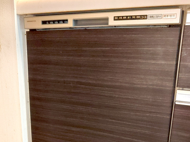 今回は、食器洗い乾燥機の扉面材を再利用することで、他の扉と同色を維持したまま交換することができました。