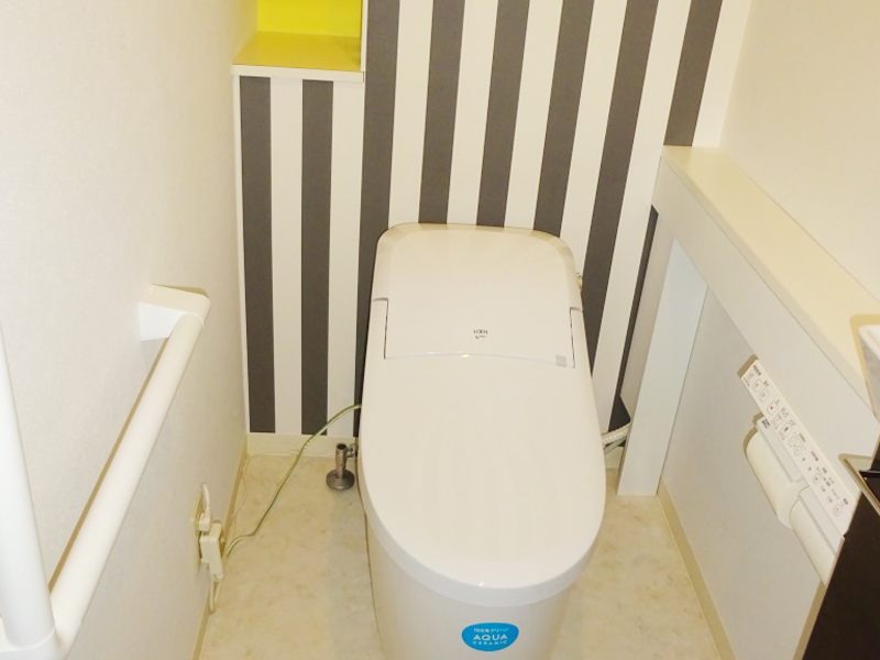 ストライプと黄色がアクセント。お洒落なトイレ空間が一日で完成!