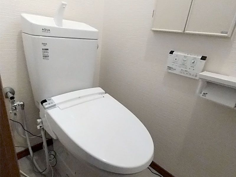 トイレ本体:LIXIL アメージュ(フチレス) 温水洗浄便座:LIXIL KA21QC タオルリング:LIXIL KF-91A 紙巻き器:LIXIL CF-AA64 他:クロス、クッションフロア貼替 |