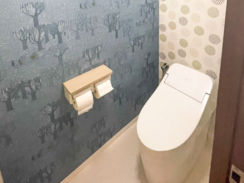 こだわりのクロスに映える節水タンクレストイレ