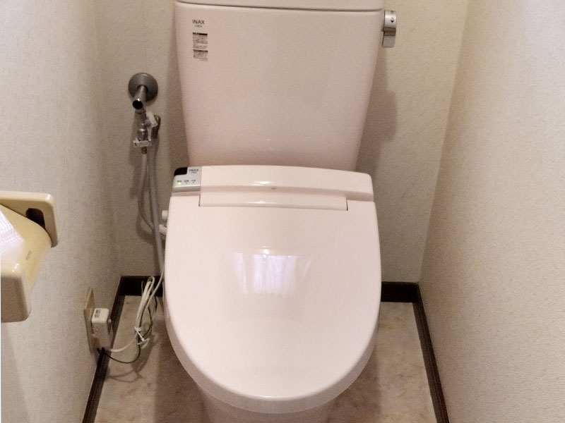 床をキレイにして温水洗浄機能を取り付けたトイレ