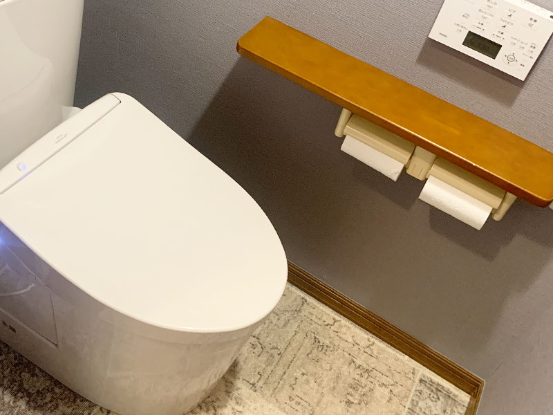 トイレ:TOTO ピュアレストEX(温水洗浄便座:アプリコットF3AW、1階:ホワイトグレー・2階:ホワイト) 壁クロス:リリカラ リリカラベース(1階:LB9432、2階:LB9457) 天井クロス:リリカラ リリカラベース(1階:LBX9499、2階:LBX9500) 床:サンゲツ Hフロアコンパクト(1階:HM15001、2階:HM15005) |