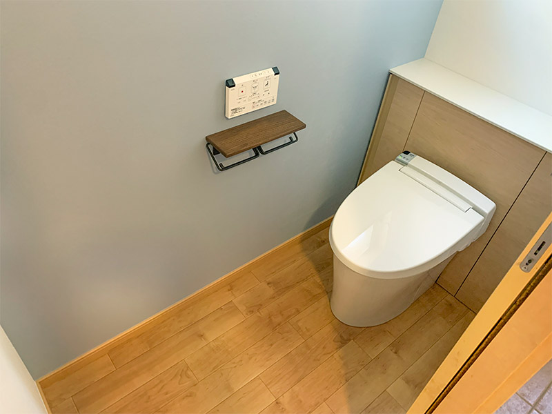 元々はタンクレストイレを希望しておりましたが、予算的に厳しくあきらめていたところ、担当営業の方から「後ろの棚になっている壁を撤去して、キャビネット付きトイレにしてはどうか?」というアドバイスをいただき、今までのトイレよりも便器自体の位置が奥になり、かつ、お掃除が大変だったタンクもなくなったので満足です。