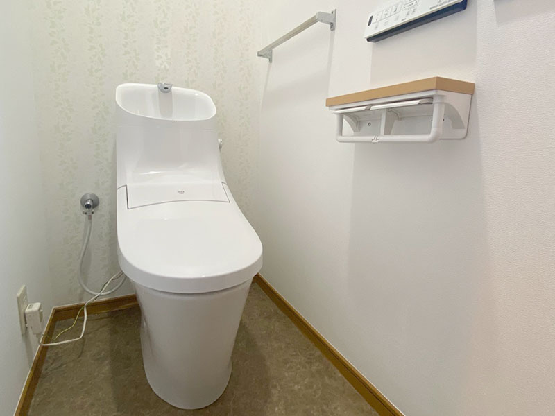 トイレは節水タイプになり、内装も1面変えるだけでイメージが変わります。白系統の壁紙なので以前より明るくなって良かったです。