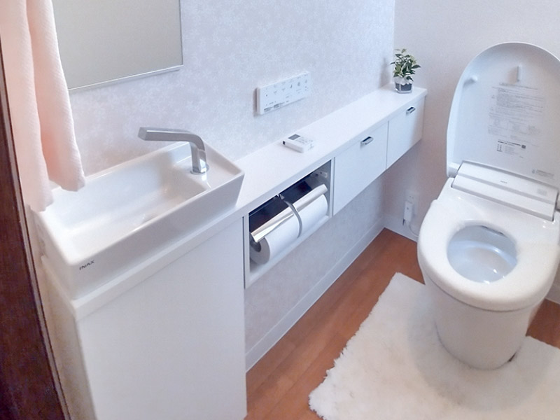 トイレの収納が増えて満足しています。手洗器下の収納スペースも以前より広くなり、とても使いやすくなりました。