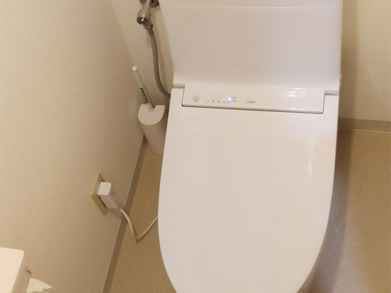 「清掃性をよくしたいが、タンクレストイレほどの機能は必要ない」とのことでしたので、TOTOのGG-800一体型トイレをご提案させて頂きました。