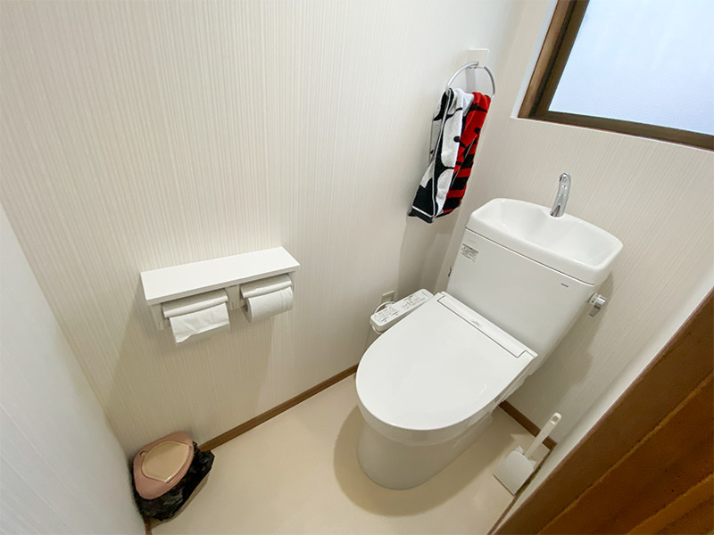 全体的に白系を持ってくることでトイレの雰囲気が明るくなりました。