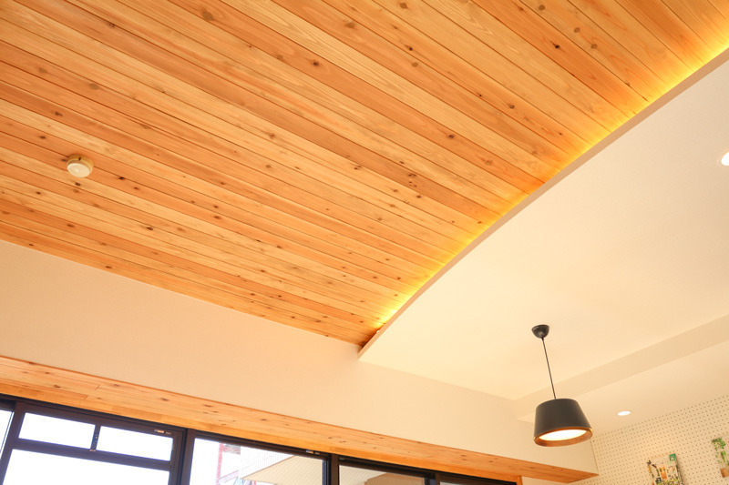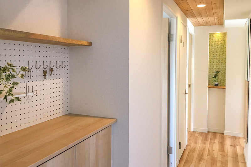 この杉材は廊下・トイレ・リビングと複数のお部屋で、機能性およびデザインのアクセントとして大活躍の結果となりました。