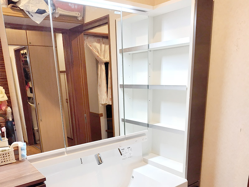 洗面化粧台が古くなり、収納が少ないことや掃除のしにくさが気になっていました。