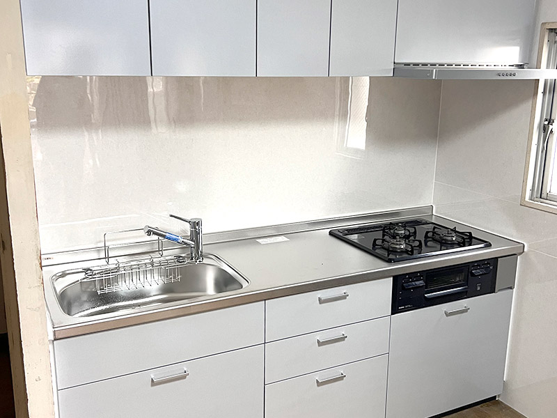 収納が使いづらく、壁タイルの掃除も大変なので、明るく使いやすいキッチンにしたい。