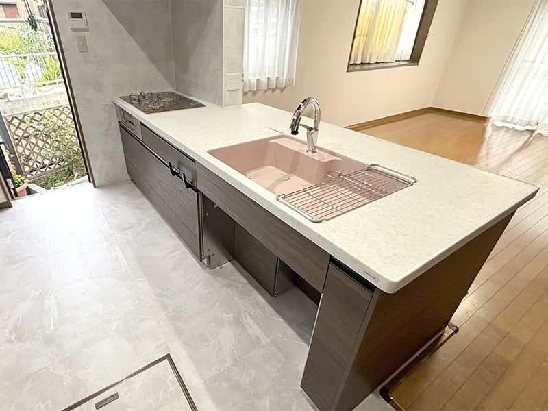 対面化で広々使える、収納力も確保したキッチン
