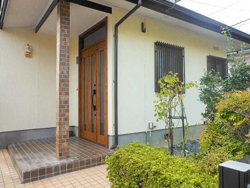 木製の玄関ドアのため日焼け等による劣化が著しく、取り替えたい。