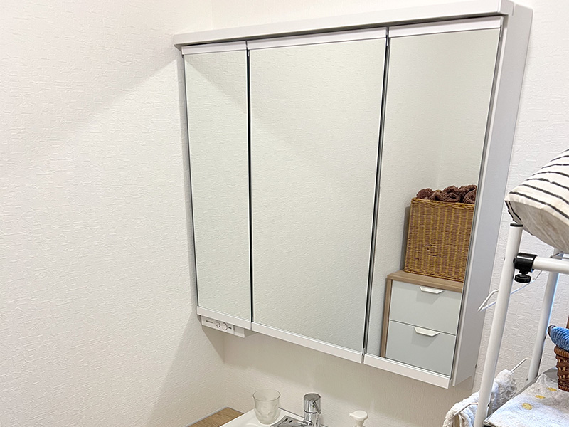 三面鏡で収納力アップ、すっきり整う洗面室