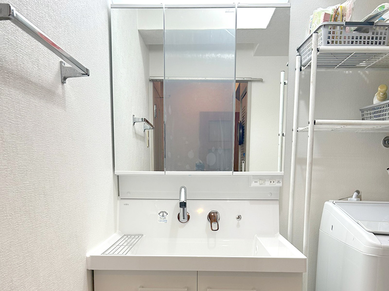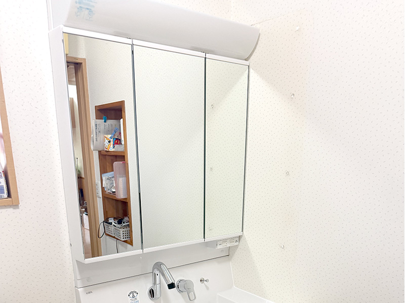 洗面化粧台の収納が少なく、物があふれてしまうため、収納量を増やしたい。